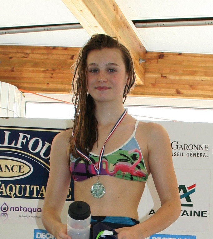 La jeune nageuse bergeracoise Lise-Marie Rousselot (14 ans) a été sélectionnée en équipe d’Aquitaine minime pour participer les 15 et 16 mai prochain à la coupe de France des régions à Chartres (bassin de 50m). Récompense méritée pour Lise-Marie au vue de ses résultats de la saison et de sa polyvalence. Elle concourra dans cette grande compétition nationale sur le 200m 4 nages et le relais 8x100m nage libre avec le reste de l’équipe. Rappelons qu’elle est déjà détentrice du record du CNB, départemental et interdépartementaux (24/47) du 100m papillon.