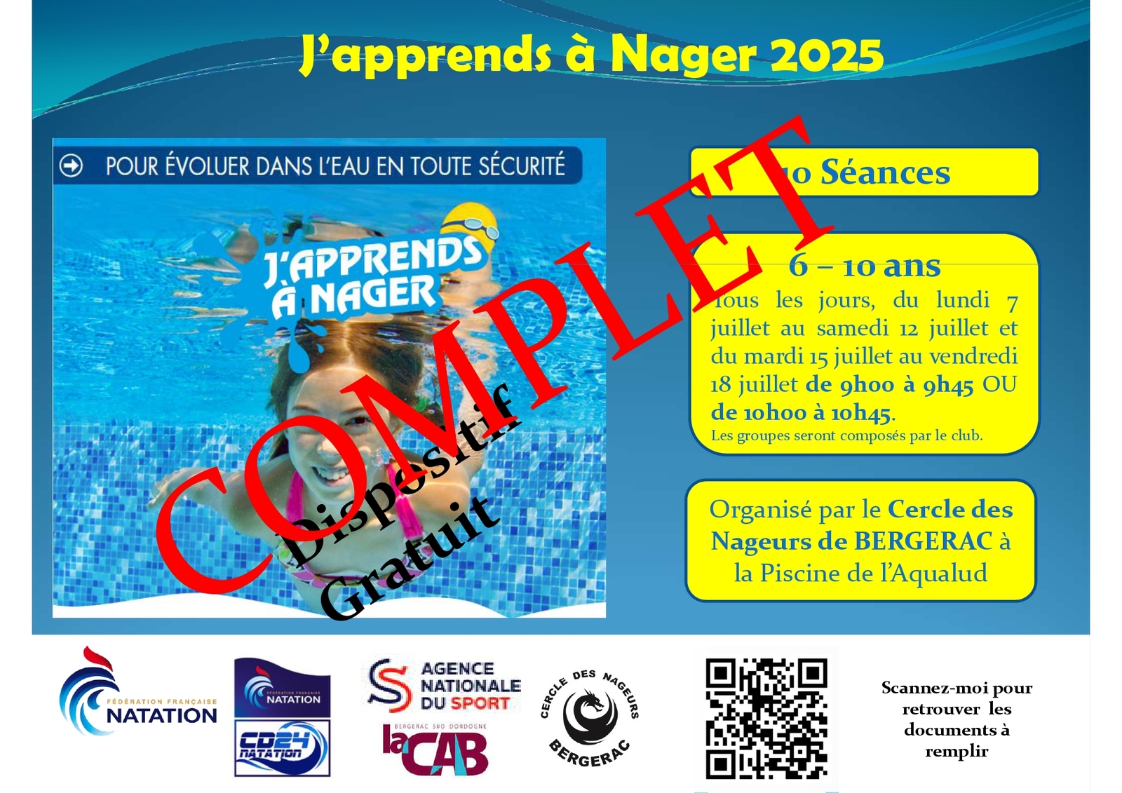 Inscrivez vous vite pour ce stage d'apprentissage de la natation gratuit !